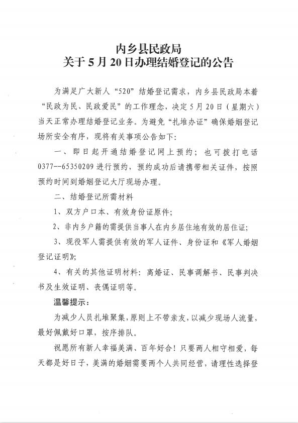民政局关于5月20日办理结婚登记的公告